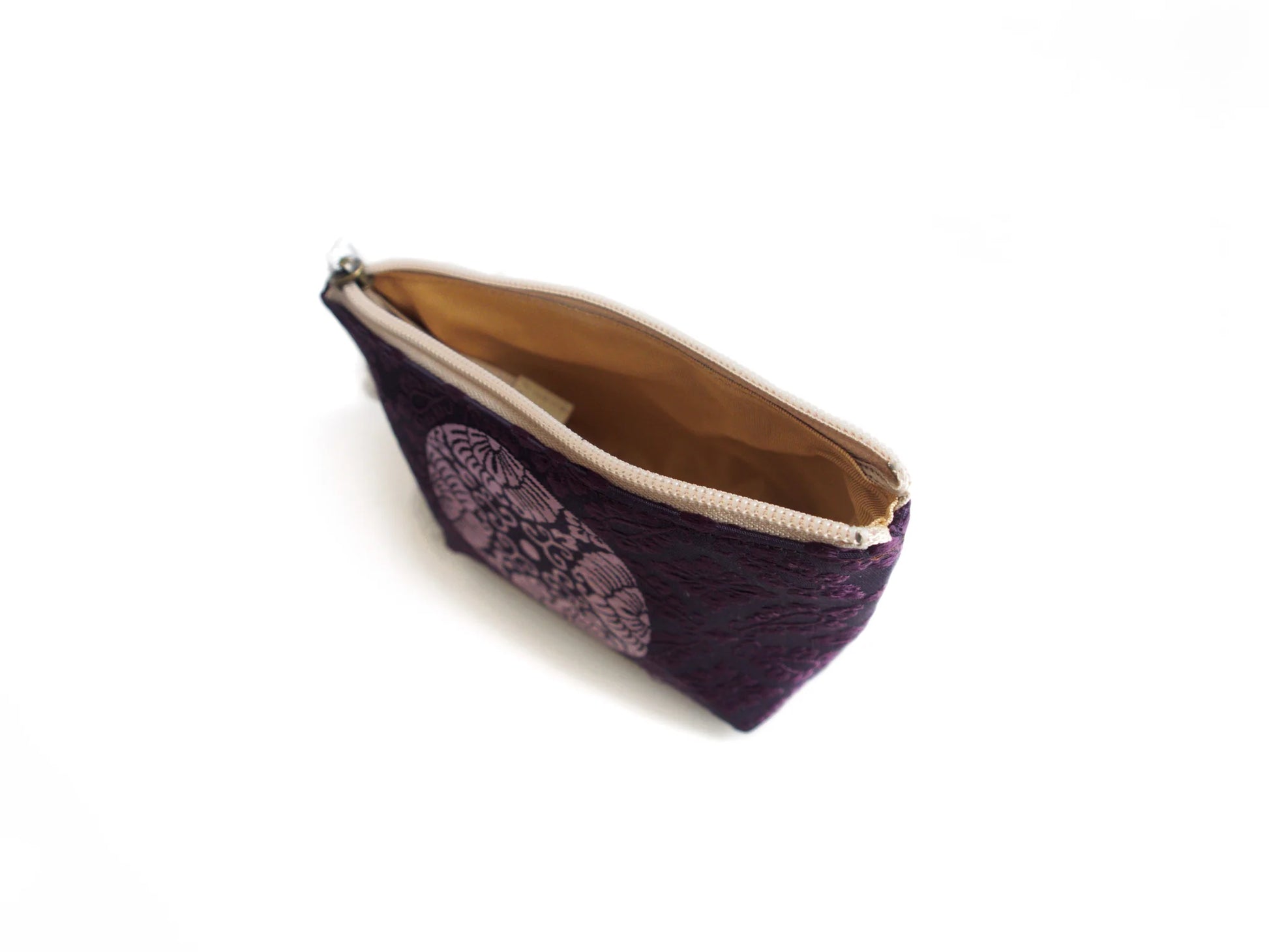 Triangular Pouch - Purple Hollyhock Pattern with Butterfly Crest on top - (Sakai-machi Mikadomae Heishichi)