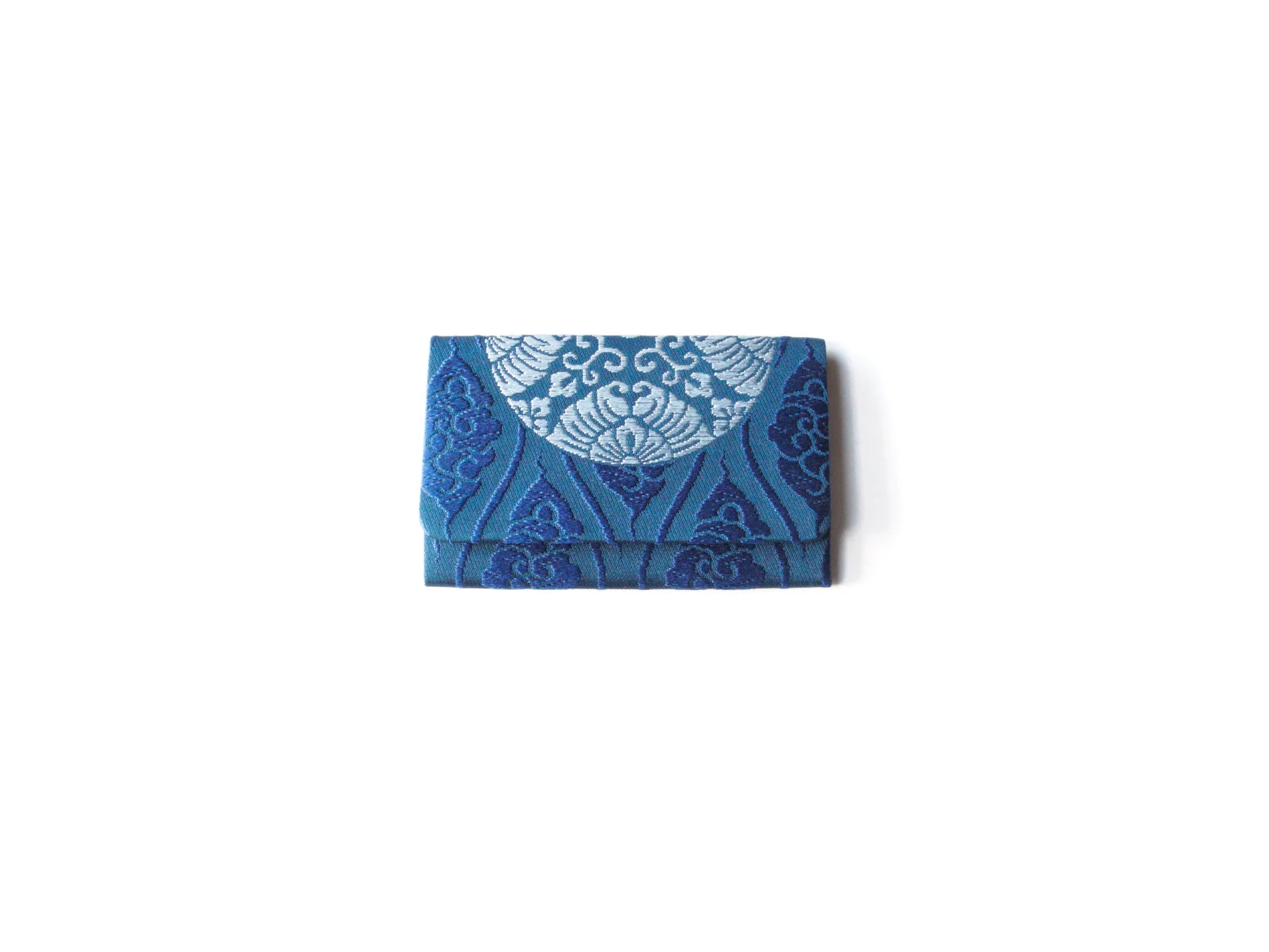 Yusoku-mon Business Card Holder with Floating Weave - Indigo cloud rising pattern with butterfly circle on top - (Sakai-machi Mikadomae Heishichi)